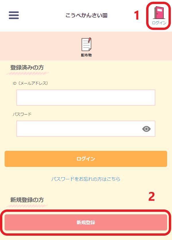 2.施設ページ右上の【 ログイン 】>【 新規登録 】。